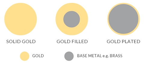 Referintele de baza la gold filled mai sunt cunoscute ca "aur laminat", "strat de aur" sau "placare metalica". Acest proces a fost dezvoltat de industrie pentru a reduce costurile pentru bijuterii fara a sacrifica frumusetea si durabilitatea lor.