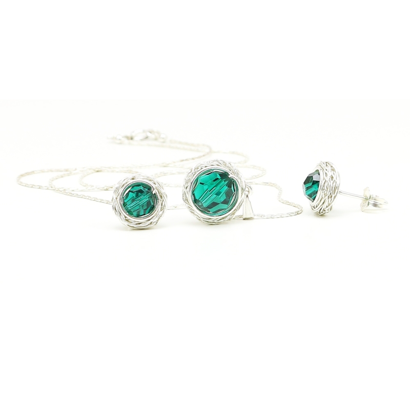 Sweet Emerald - 925 Silver set pendant and stud earrings