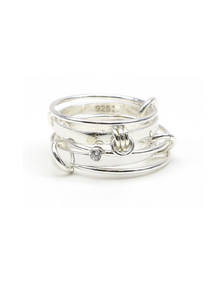 Designer's note - availability: For this model, within the limits of the available stock, the sizes 17.5, 18.5 mm and 19.5 mm can only be made in a variant of 3 simple and 2 flat rings, without that ring with mount and 2 mm cubic zirconia, in instead of it, a simple one or one with a heart will be used. For the other measures where we have a ring with a 2 mm mount, we use cubic zirconia: crystal clear of 2 mm. Other available colors of cubic zirconia: black, red; emerald; light blue, dark blue, lavender; champagne; lime green; medium amethyst; purple; rhodolite; tanzanites; rose pink; yellow.